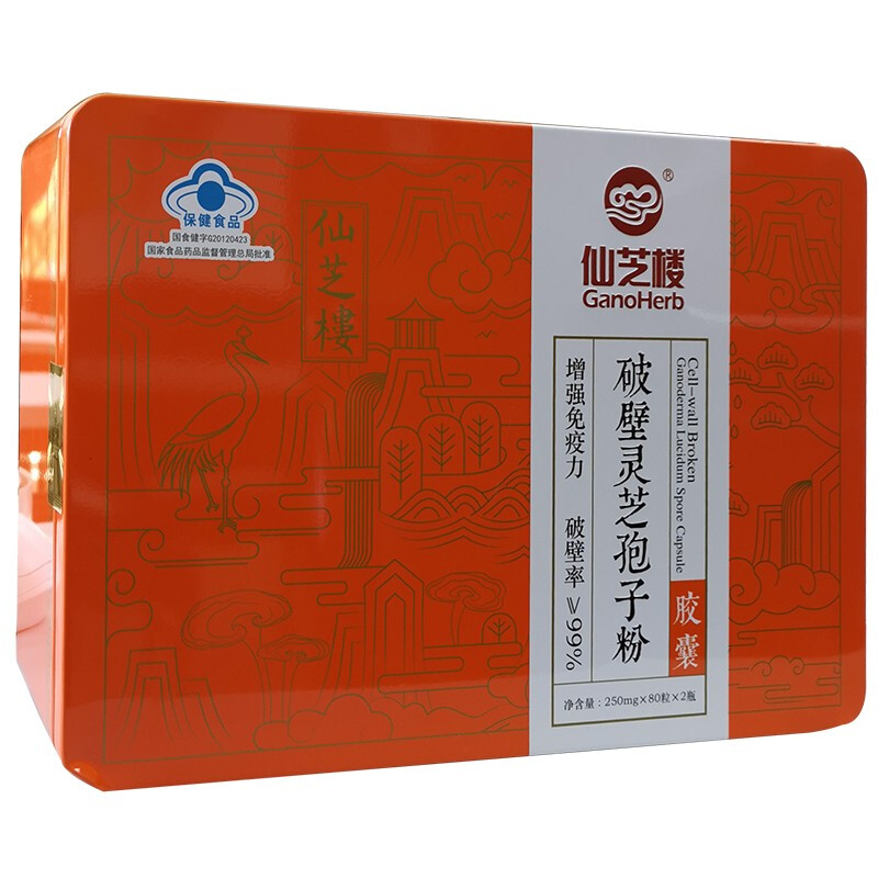 仙芝楼牌破壁灵芝孢子粉胶囊250mg/粒*80粒*2瓶/盒
