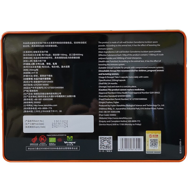 首页>全部商品>营养保健>营养成分>灵芝孢子粉>仙芝楼牌破壁灵芝孢子粉胶囊250mg/粒*80粒*2瓶/盒