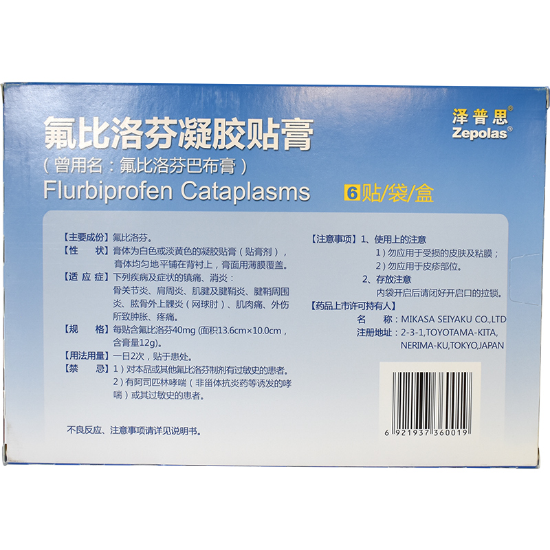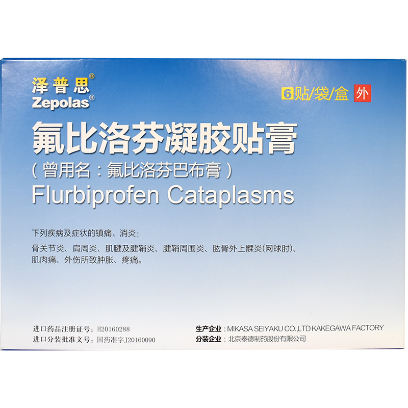 首页>全部商品>专科用药>风湿关节>风湿骨痛>泽普思 氟比洛芬凝胶贴膏13.6cm*10cm*6贴/盒