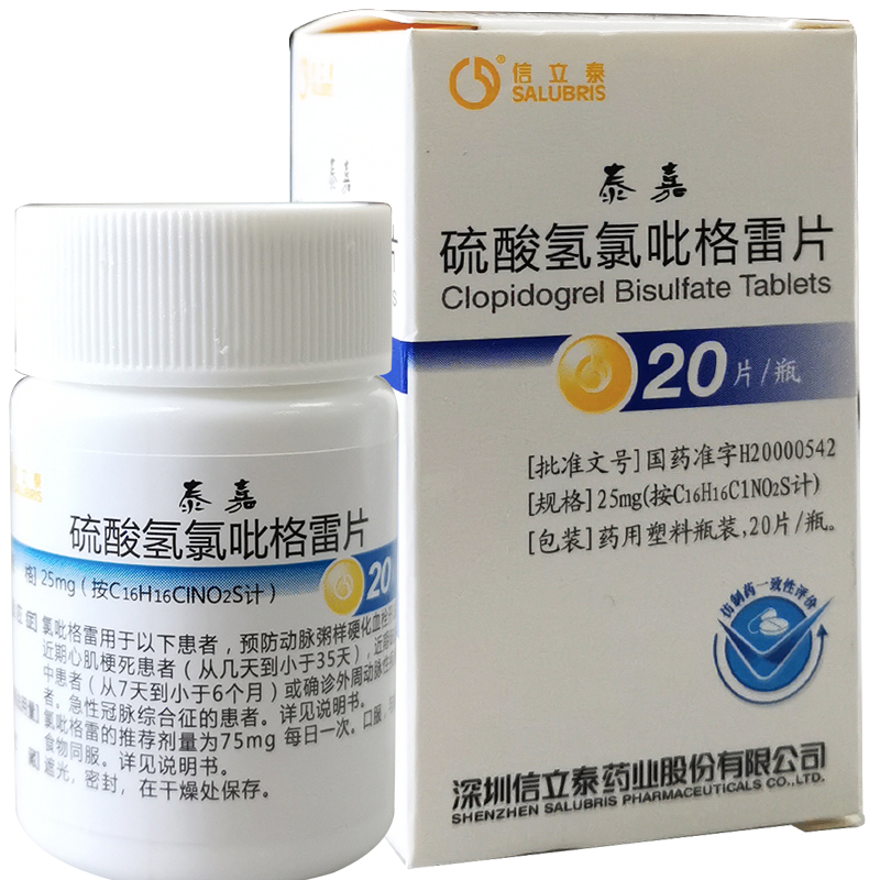 首页>全部商品>专科用药>心脑血管>心脑血管综合用药>泰嘉硫酸氢氯吡格雷片20片