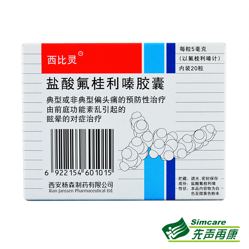 西比灵盐酸氟桂利嗪胶囊5mg*20粒