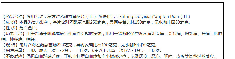 复方对乙酰氨基酚片(II)